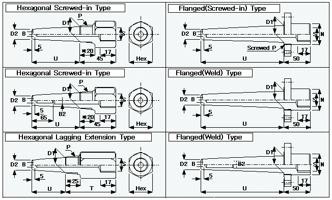 THERMOWELL ±¸¸Û ¹× ±íÀÌ(Bores & Depths) | ||